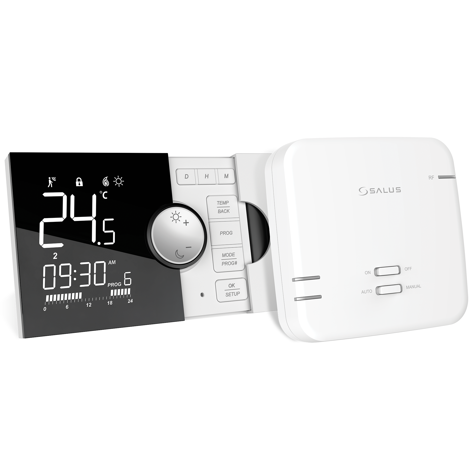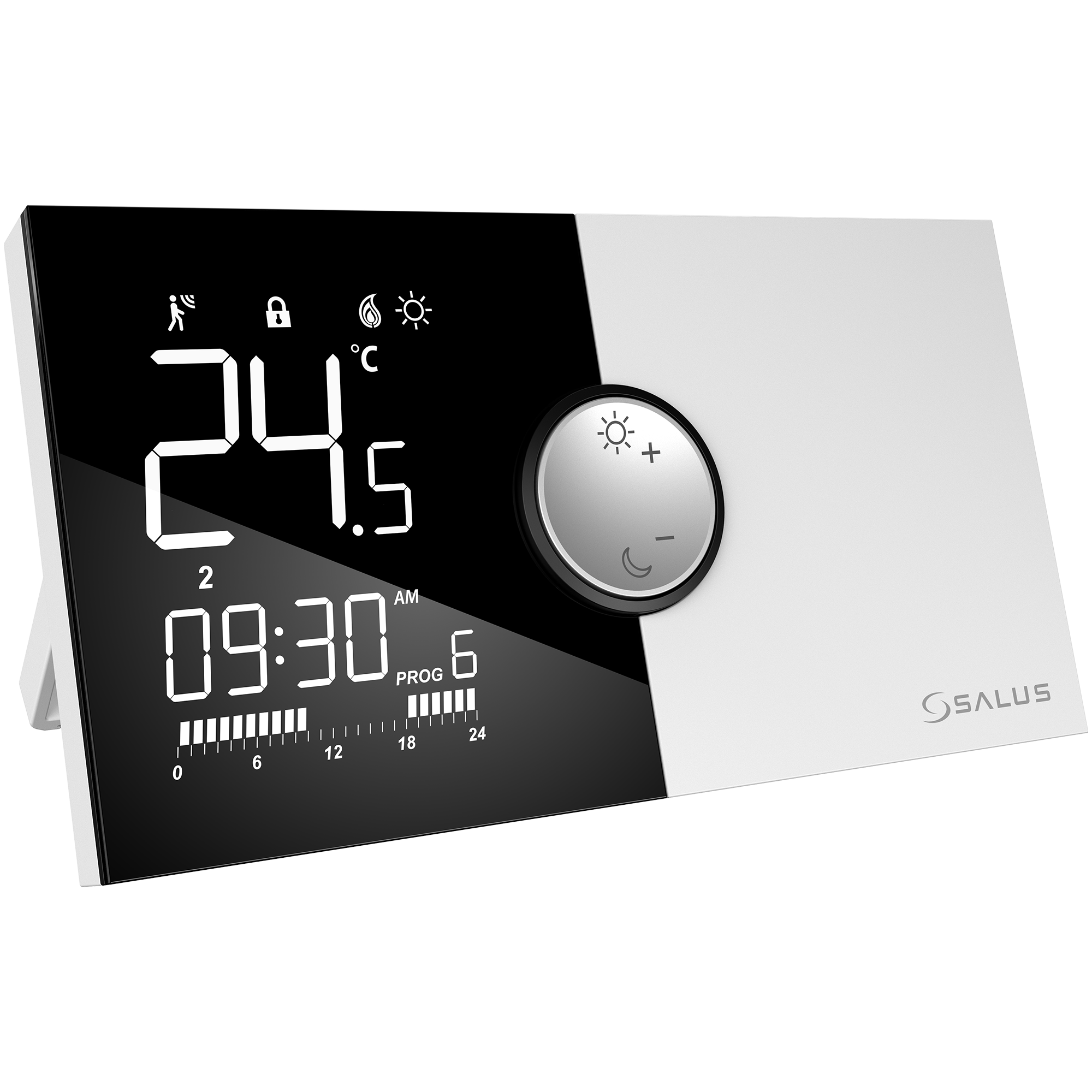 SALUS 091PRO-RF je bezdrôtový týždenný programovateľný termostat určený pre vykurovacie aj chladiace systémy. Ponúka jednoduchú inštaláciu, prehľadné ovládanie a funkciu BOOST s detekciou pohybu.