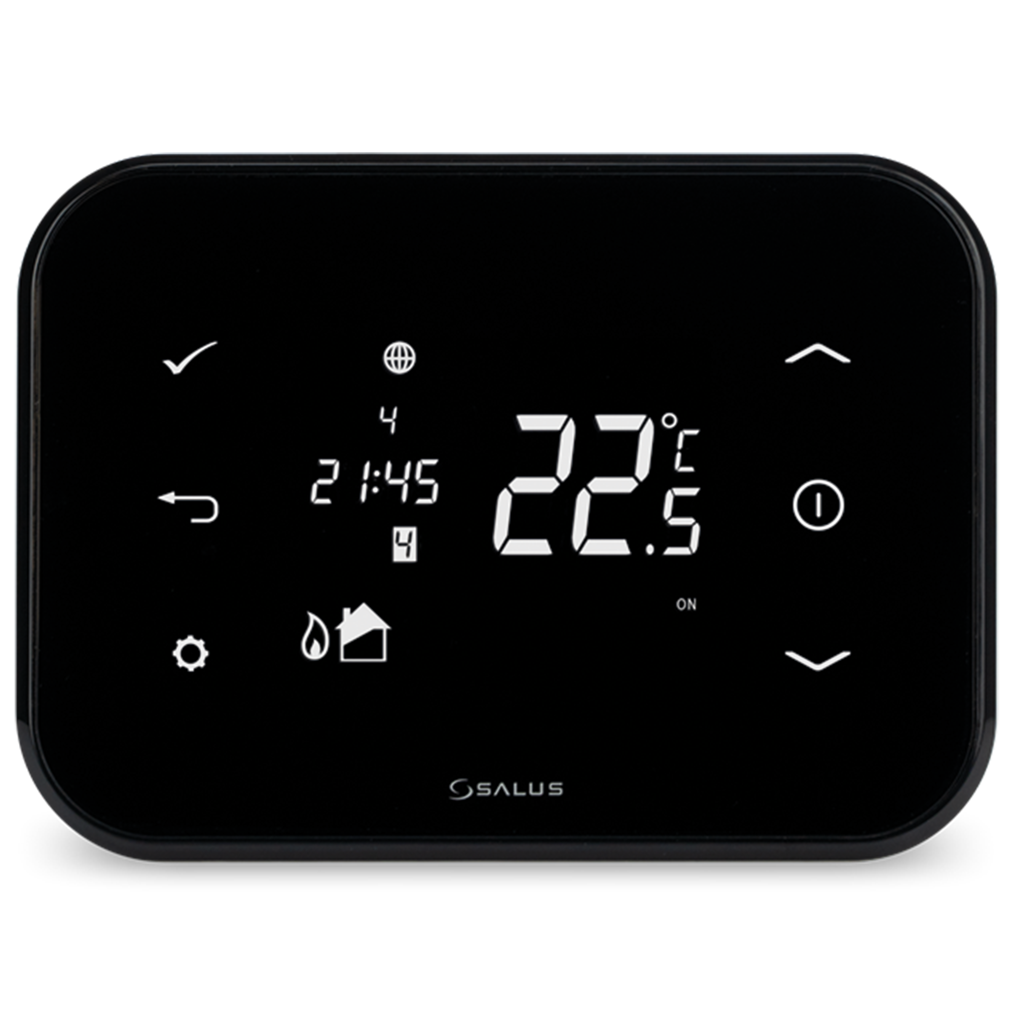 Moderný bezdrôtový Wi-Fi termostat na ovládanie vykurovania odkiaľkoľvek pomocou aplikácie SALUS iT500 Plus.