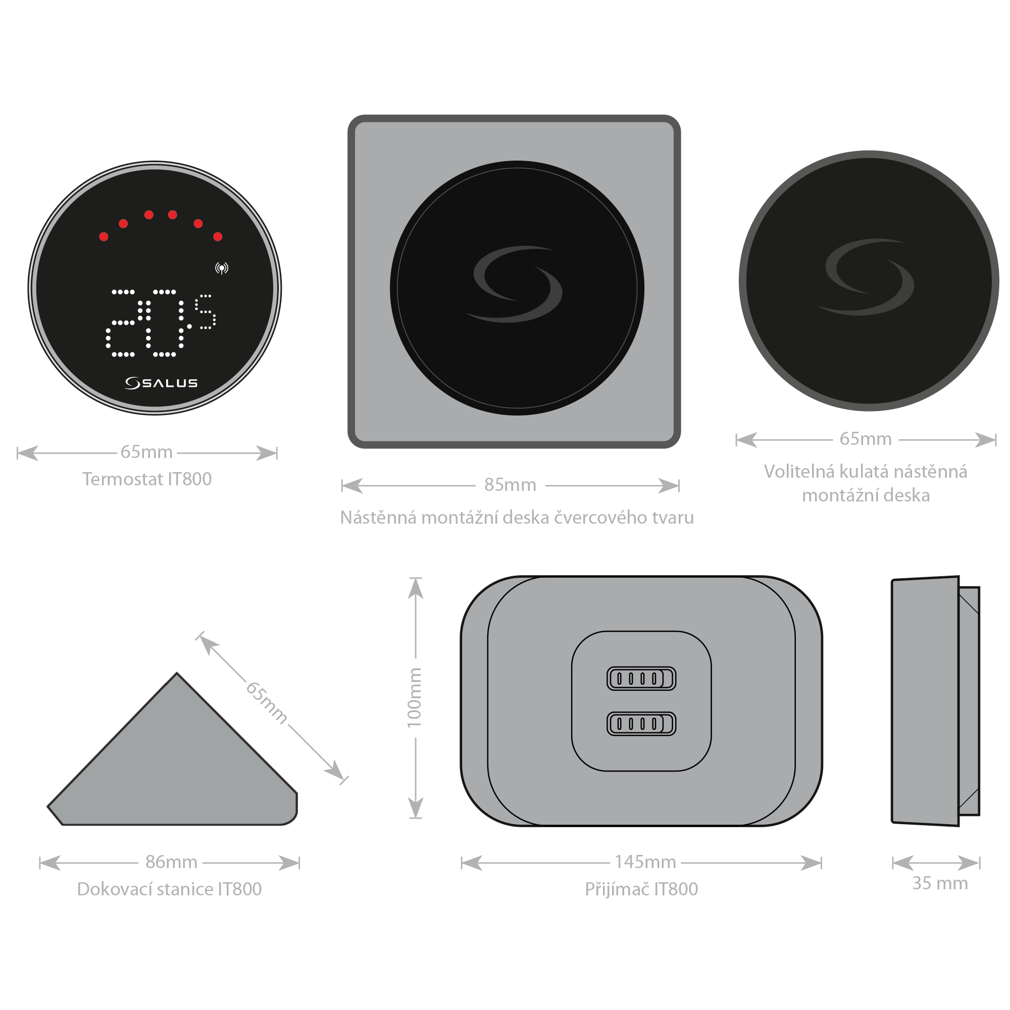 | Rozmery | 65 x 65 x 25.6 mm (termostat) | 145 x 65 x 35 mm (přijímač) |