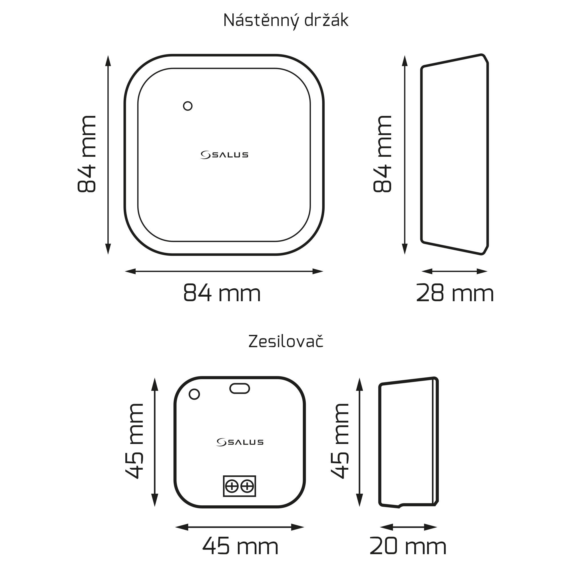 | Rozmery | 45 x 45 x 20 mm (zesilovač) | 84 x 84 x 28 mm |