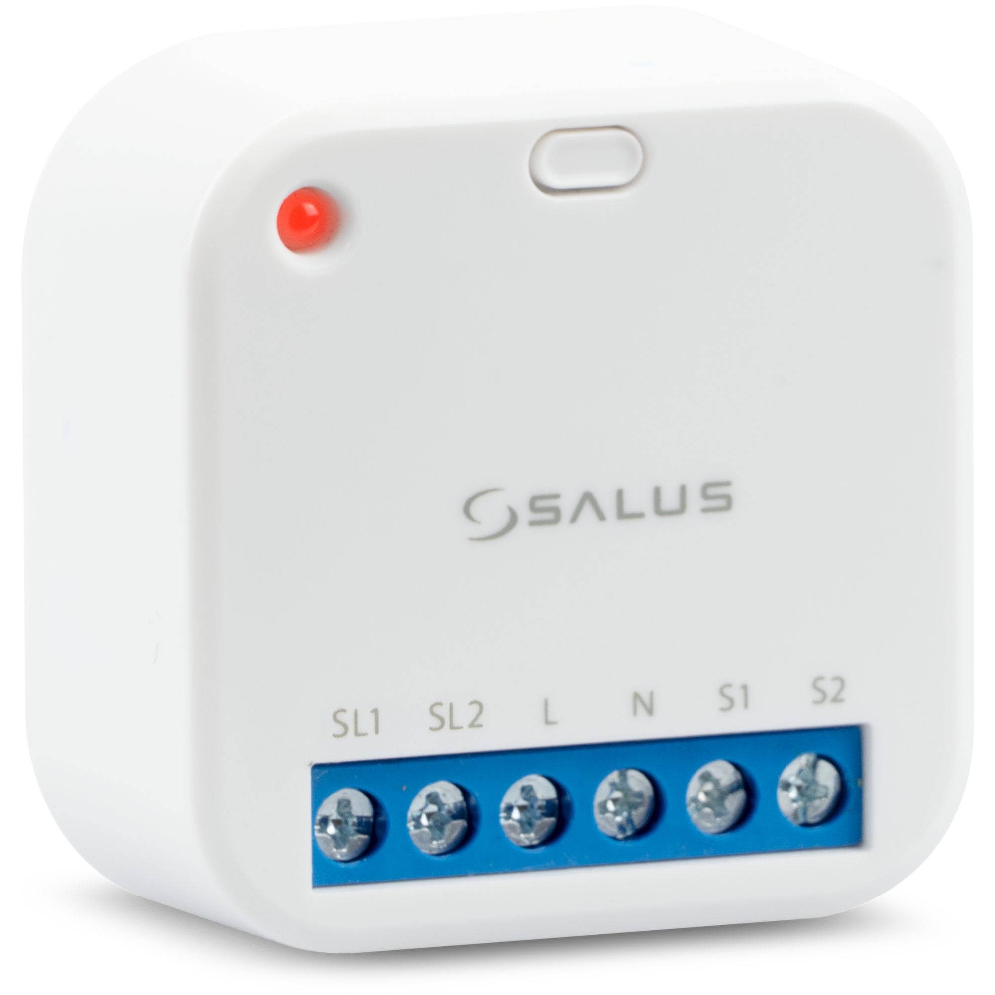 Inteligentné relé SALUS RS600 je súčasťou systému SALUS Smart Home a umožňuje diaľkové ovládanie pripojeného zariadenia prostredníctvom mobilnej aplikácie – napríklad žalúzie, motorické závesy alebo osvetlenie.