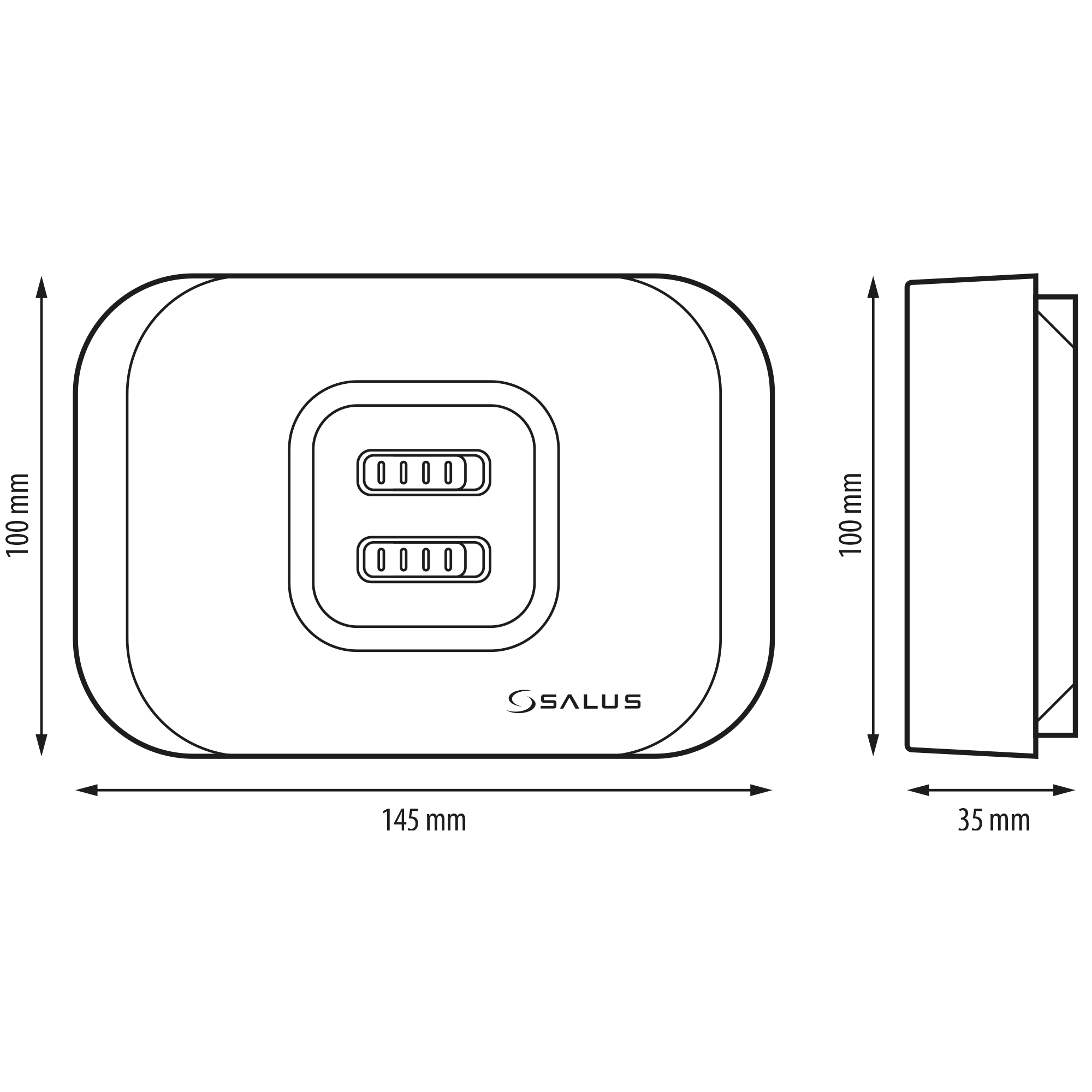 Bezdrôtový prijímač SALUS RX10RF je výkonným prvkom systému SALUS Smart Home. Prijímač je aktivovaný na základe signálu požiadavky na kúrenie pochádzajúceho z termostatov z rovnakej siete. Môže nahradiť káblové spojenie medzi svorkovnicou SALUS KL08RF a kotlom. V systéme s hlavicami TRV je voliteľným prvkom, ktorý aktivuje zdroj tepla.