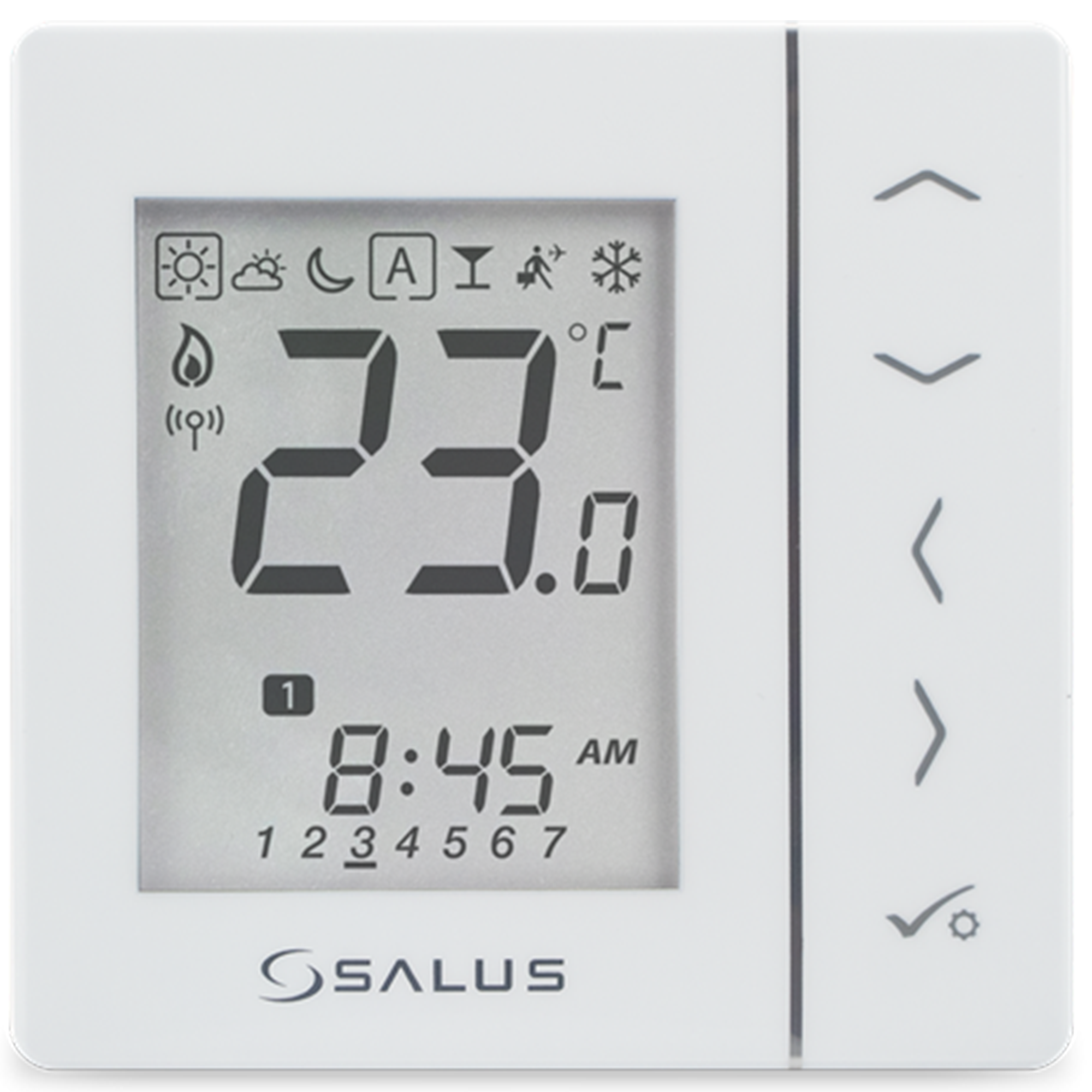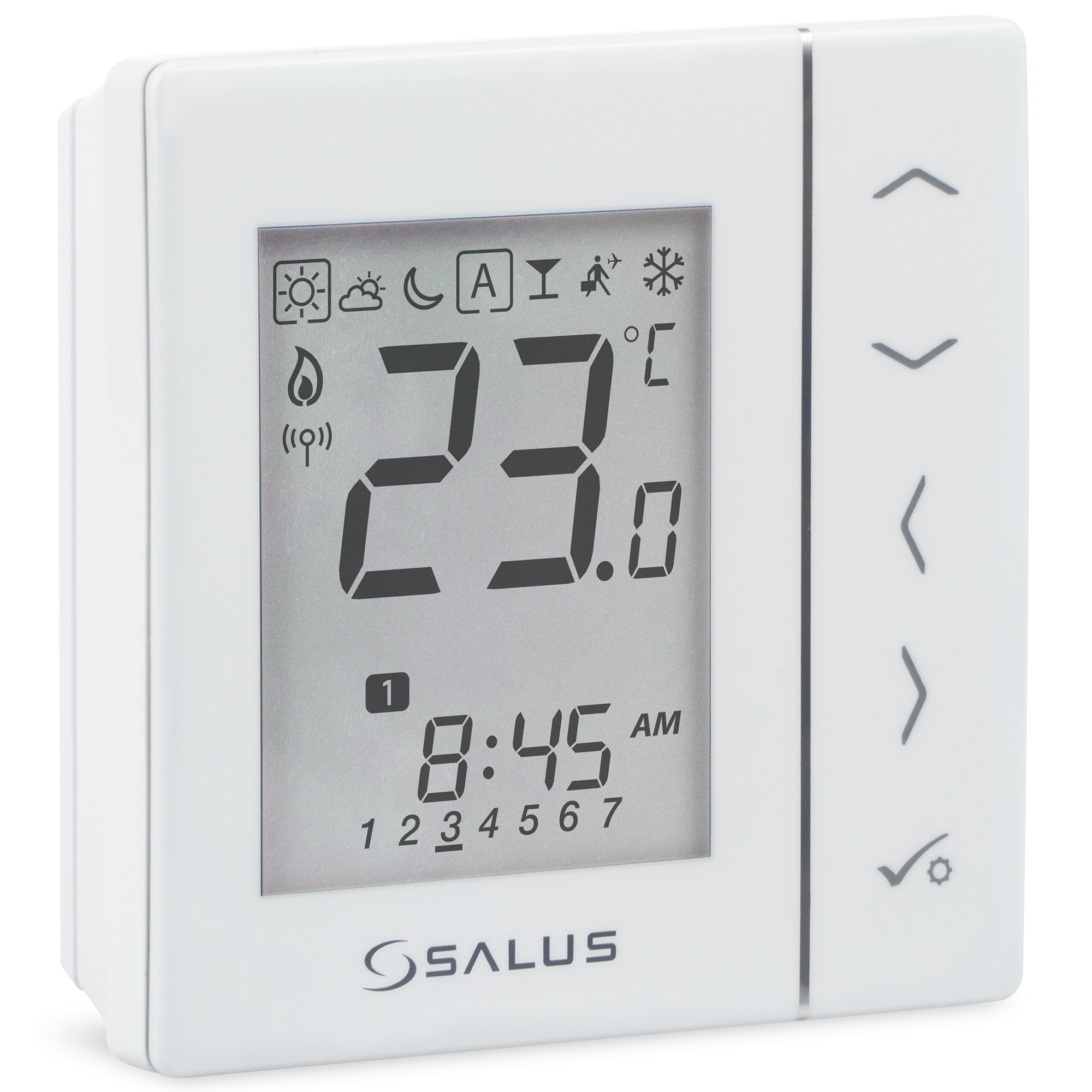 SALUS VS20WRF je nástenný termostat pre bezdrôtové ovládanie zariadení z radu SALUS Smart Home, ako sú: