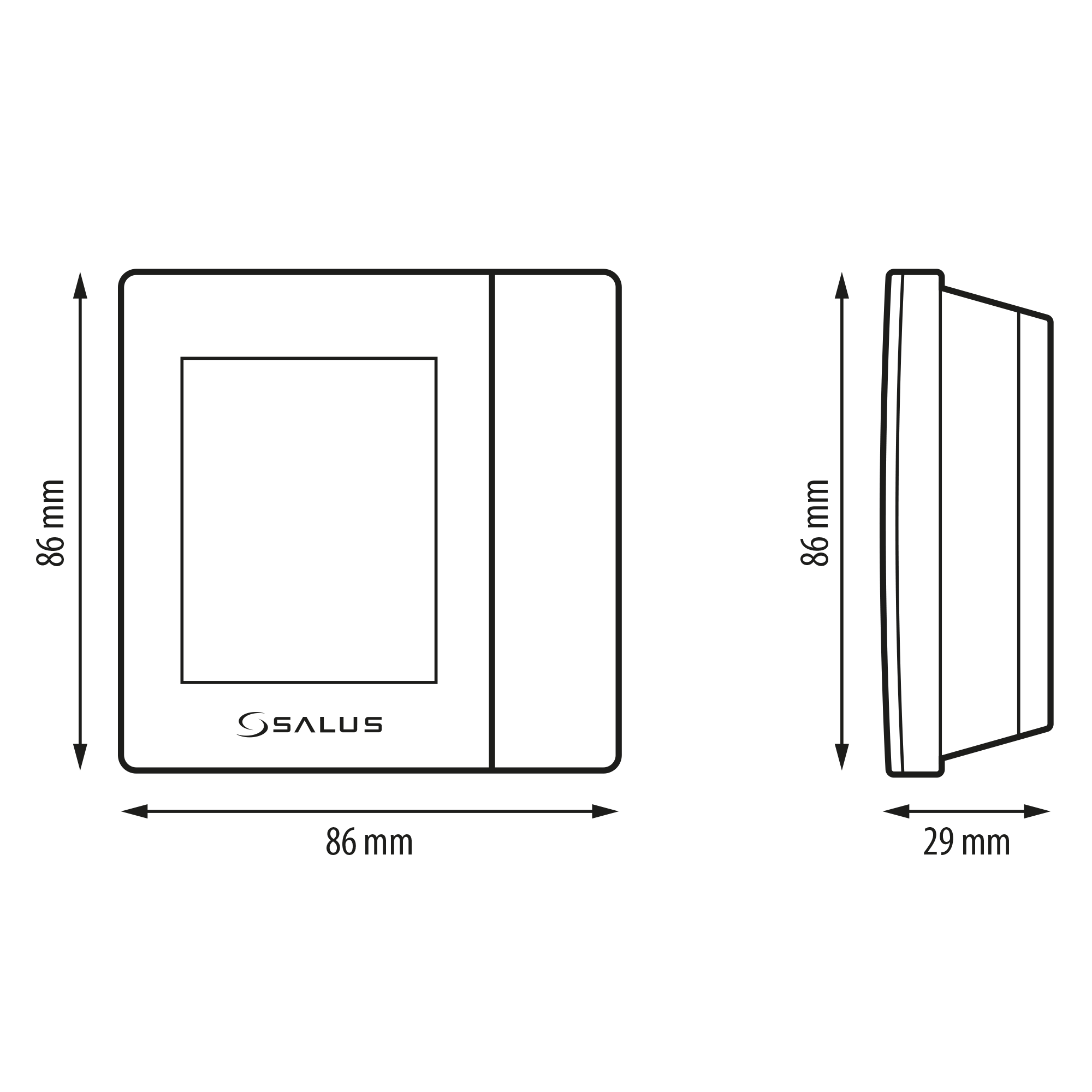 Nástenný termostat pre bezdrôtové ovládanie zariadení z radu SALUS Smart Home, ako sú: centrálna svorkovnica KL08RF, TRV hlavice a prijímač RX10RF.