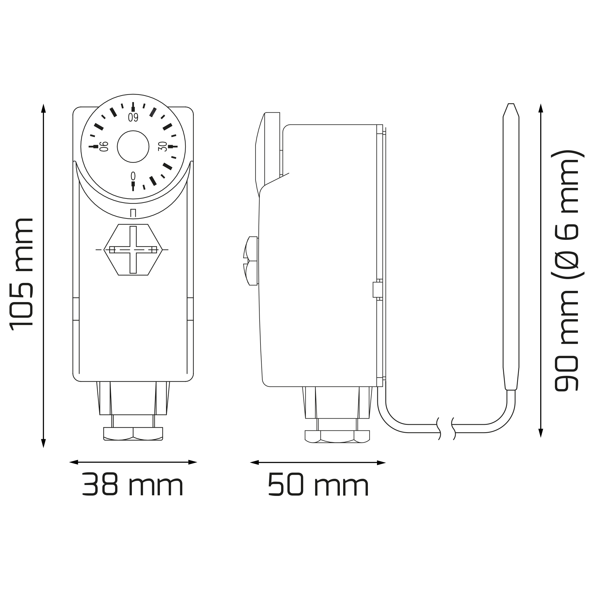 | Dĺžka čidla teploty | Kapilára - 1,2 m |