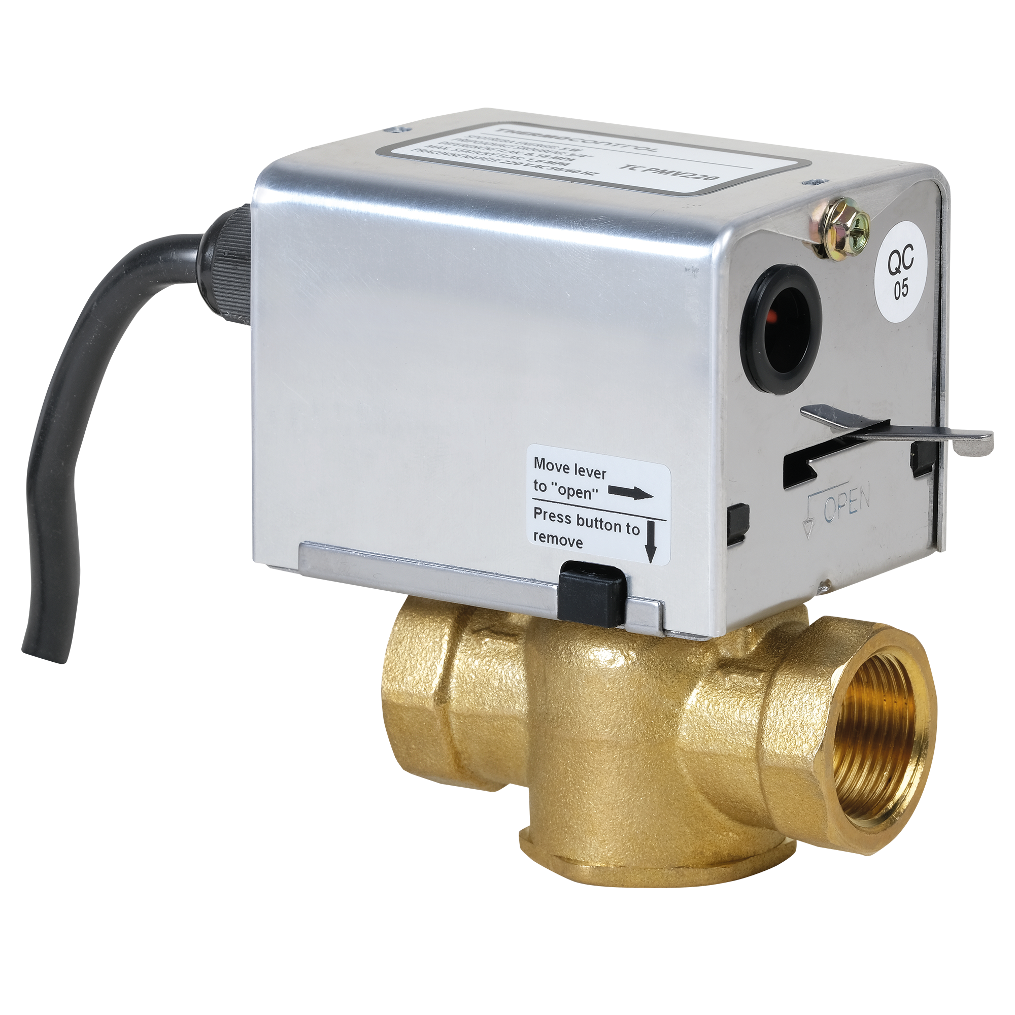 Motorický ventil s pomocnými kontakty a vratnou pružinou, třícestný