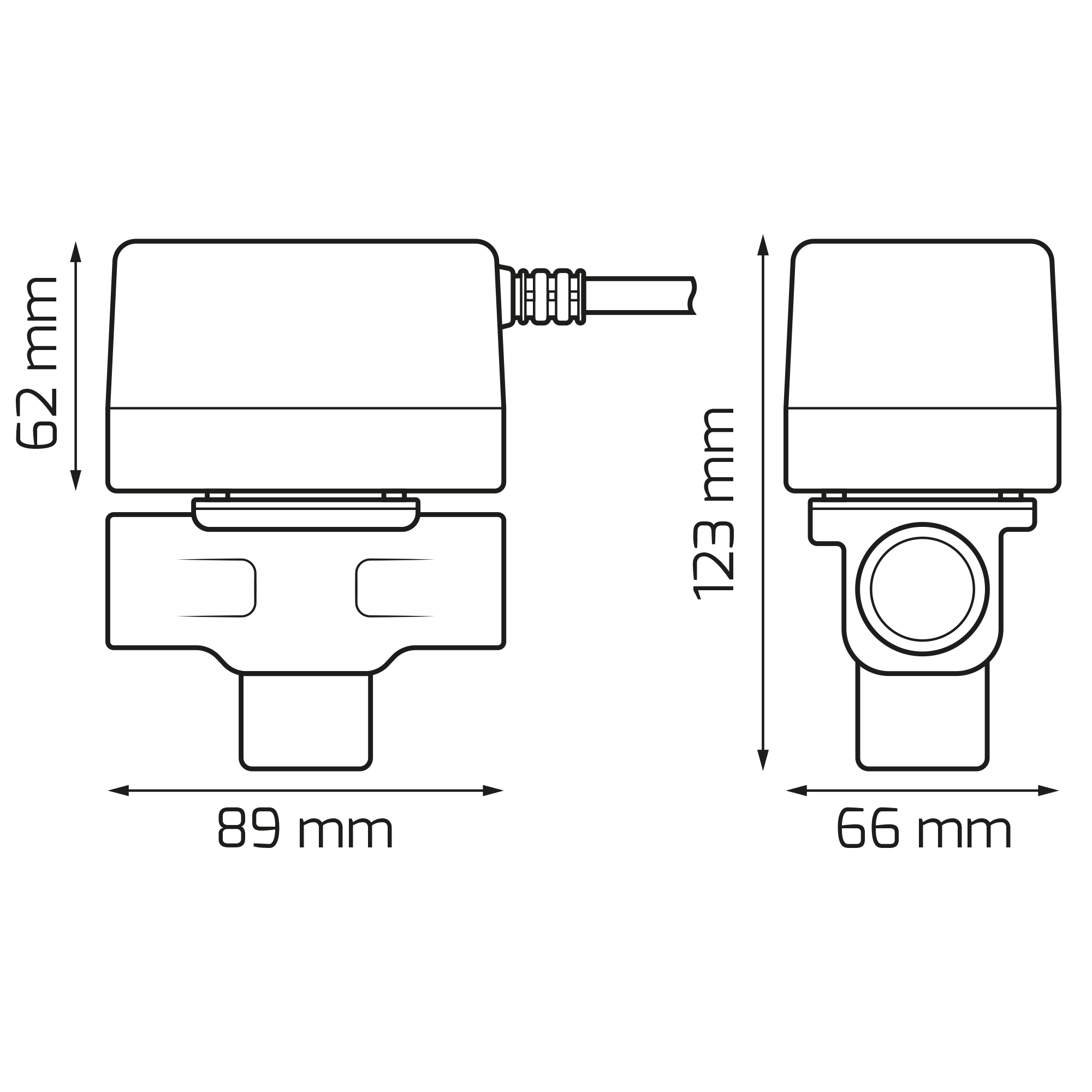 Motorický ventil s pomocnými kontakty a vratnou pružinou, dvoucestný