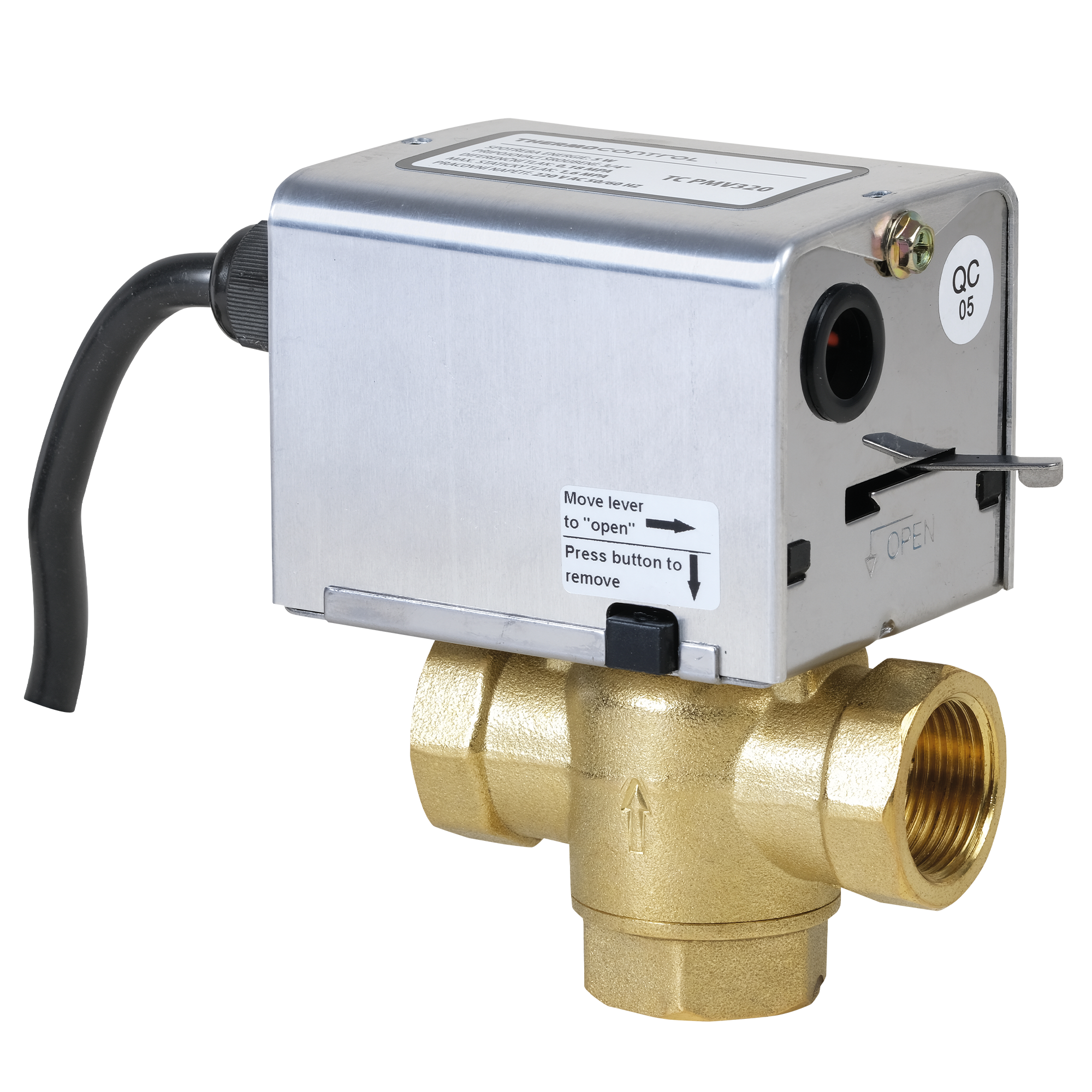 Motorický ventil s pomocnými kontakty a vratnou pružinou, třícestný